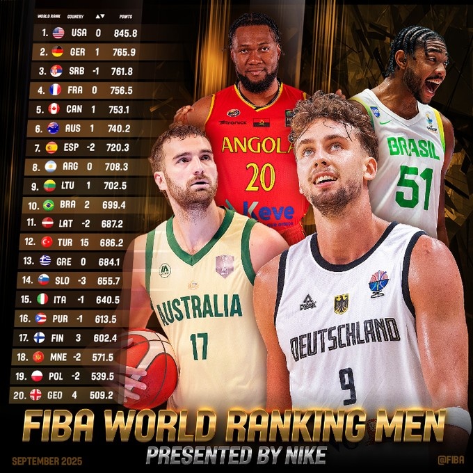 9月18日訊 今天,F(xiàn)IBA官方更新了男籃世界排名,美國隊(duì)仍然排名第一,德國隊(duì)升至第2,塞爾維亞隊(duì)降至第3。