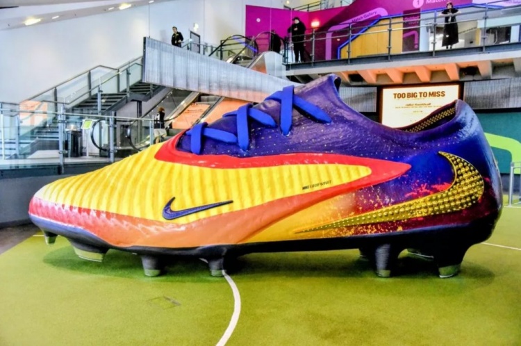 現(xiàn)在,這只被耐克稱為“不容錯過”的巨型球鞋正在國家足球博物館展出,球迷們可以在9月20日和21日前往參觀。這只球鞋高2.45米,寬2.02米,相當(dāng)于英國尺碼672,是哈蘭德實際球鞋的70倍大小,打破了之前的世界紀(jì)錄(5.35米 x 2.05米 x 1.70米)。